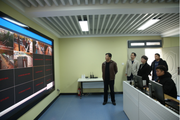 考核组详细查阅我校“平安校园”创建工作有关档案、资料,实地查看了学校监控室指挥室、器材配备、学生餐厅等重点部位。