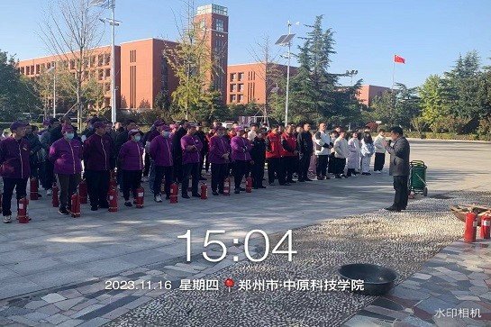 在2023年11月9日消防安全日到来之际,为强化在校师生及物业服务人员对于消防安全重要性的认识,普及消防知识,确保我校的校园安全,郑州校区特举办以“预防为主,生命至上”为主题的消防安全宣传及消防演练活动。