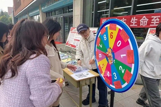 11月9日,为提高我校学生宿舍消防安全意识,后勤管理处组织学生开展消防安全系列活动,本次活动共设置条幅签名、问题转盘、违规电器展、手抄报4个环节,同学们在工作人员的引导下依次参与签到、转盘答题、手抄报报名等活动。有趣的问题转盘活动吸引了众多学生前来打卡参加,活动现场热情高涨,各个环节有序进行。