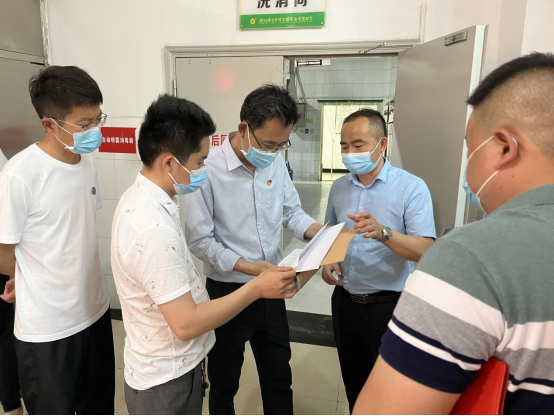 检查过程中,杜建松强调,食堂管理关系到学生饮食安全,特别是在疫情防控期间,校园实行封闭管理,食堂饭菜质量关系到学生的健康成长,关系到学生能否“吃饱、吃好”的问题,青年学生正处在长身体的关键时期,要把学生“吃饭”的事情当做头等大事来抓,让学生吃得放心、吃得健康,让学生家长放心。杜建松要求,一是要严格落实常态化疫情防控各项工作要求。切实落实学校关于疫情防控工作的部署,将学生的身体健康和生命安全放到第一位。食堂工作人员的健康关系到食品安全,与学生健康息息相关,要严守学校疫情防控制度。二是要管控好食堂就餐各个环节、重点区域。强化错峰就餐、有序就餐,定期开展全方位消杀,加强公共餐具消毒工作,保持环境清洁,确保学生就餐各环节安全。三是要严格落实食品安全各项要求。要从源头上把好食品安全关,做好物资储存,严把原材料采购和使用环节的安全,确保为全校师生提供安全放心的饮食保障。